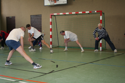 der älteren Teilnehmer wird besonders Rücksicht genommen. Beim Volleyballspiel